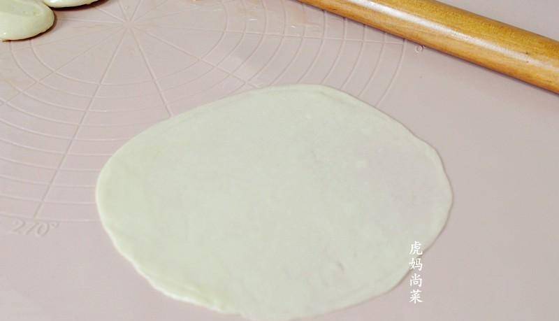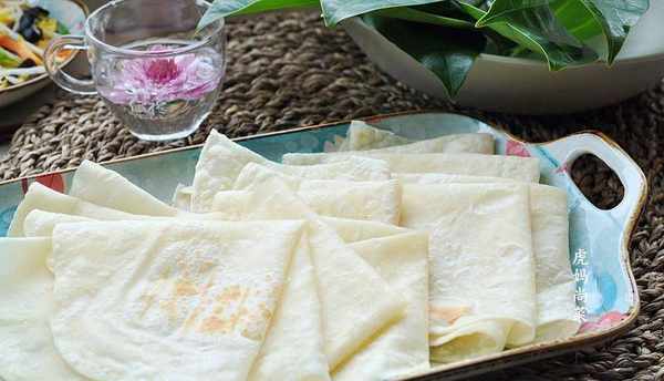 烙的春餅,最好是做燙面的,放涼也不會硬這是燙面的最大特點,先用一半的滾水將部分面粉燙熟,再加另一半的冷水和成面團即是瞭。