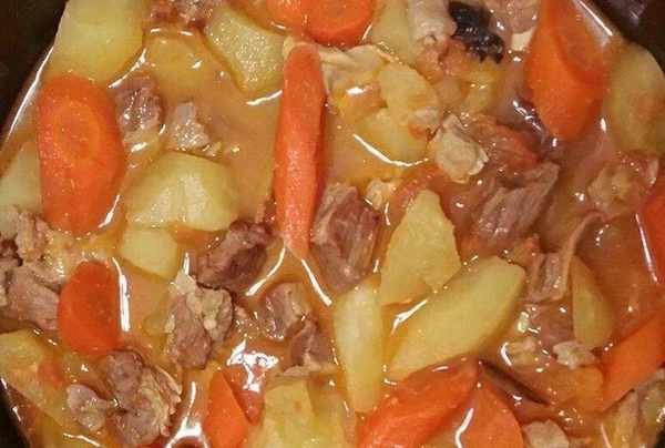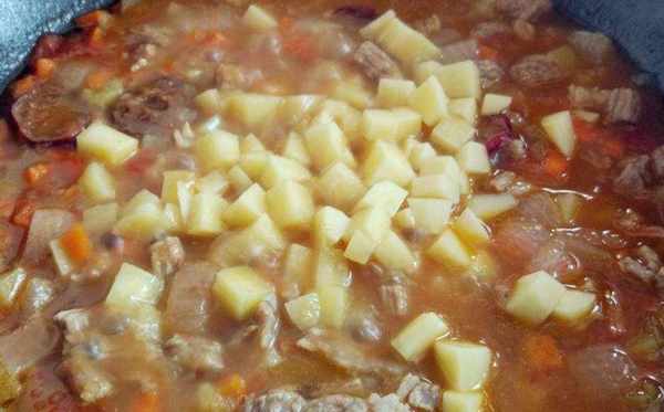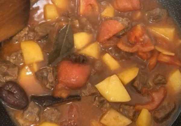 第七步:大火燒開,轉中小火燉2小時,倒入土豆,繼續燉15-20分鐘,撒入適量鹽,繼續燉5分鐘-10分鐘,然後上菜