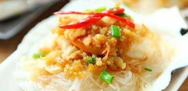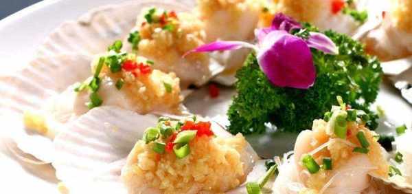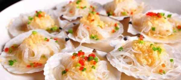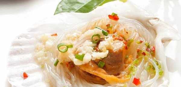 第四步,將扇貝放入粉絲中,上面放上蒜末,然後上鍋蒸,大火蒸10分鐘,最後撒上一些蔥花,淋上熱油即可。