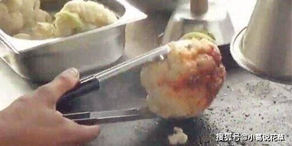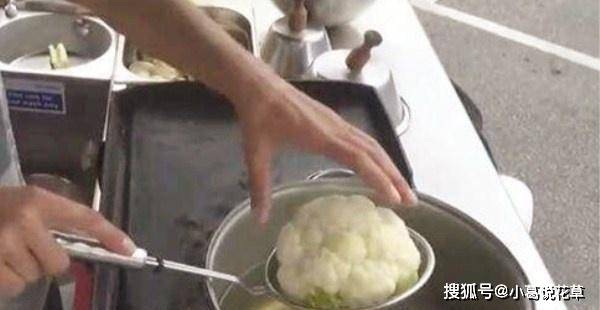 花菜我們都知道吃,一般都是煮著吃的,但是朋友們,你炒過花菜嗎?沒錯,是炒花椰菜。這個人賣煮熟的花椰菜。制作方法也很簡單。男子先將菜花放入鍋中煮沸,煮熟後取出,將整顆“菜花”放入鍋中烤熟。