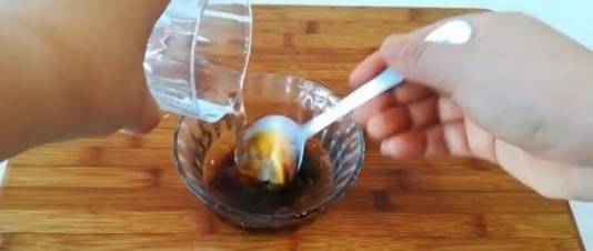 接下來是最醬的時候,做一個小碗,蠔油2勺,生抽和老抽1勺,鹽和糖適量,白菜適量,加水適量,慢慢攪拌均勻地,在加入一些小米辣椒粉來調味。將一些大蒜種子壓碎放入醬汁中,然後慢慢混合。
