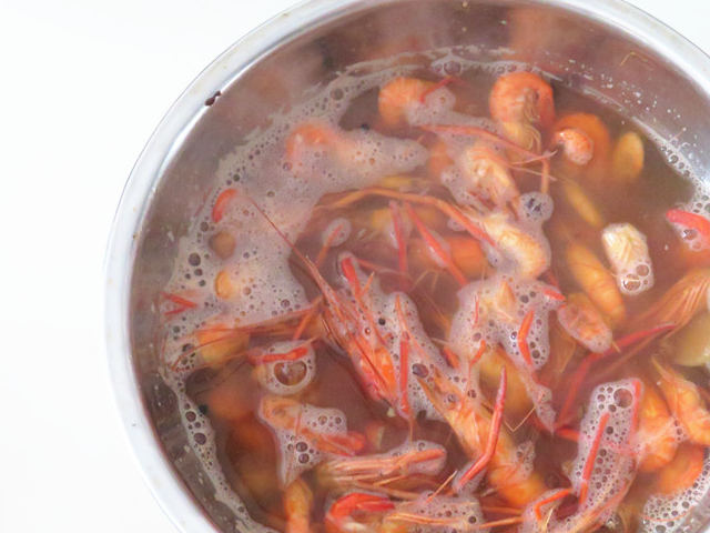 【用料】:河蝦,鹽,八角,花椒,薑片