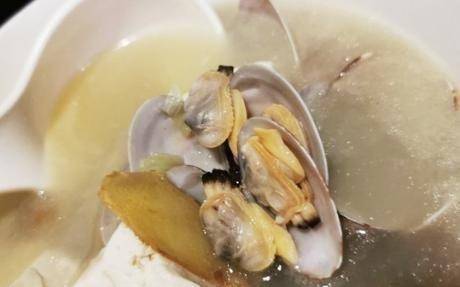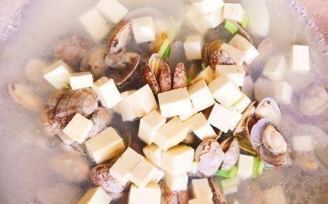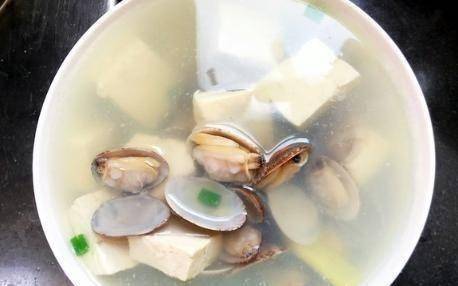 3、這道湯不需要加太多調料,鍋裡煮豆腐的時間也不需要太長,煮幾分鐘就可以瞭。蛤蜊熬湯的時間一般在10分鐘以內。品嘗。