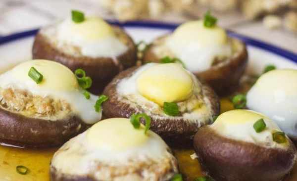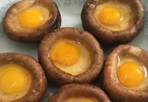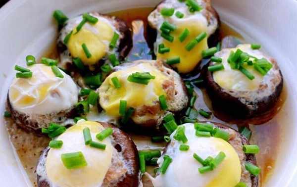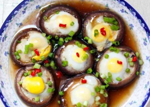 第三步:將鵪鶉蛋在香菇根部打成小坑,盛入盤中。
