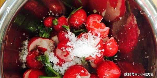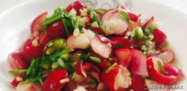 配料:櫻桃蘿卜、蒜茸、糖、醋、醬油、胡椒粉、鹽、味精、香油。