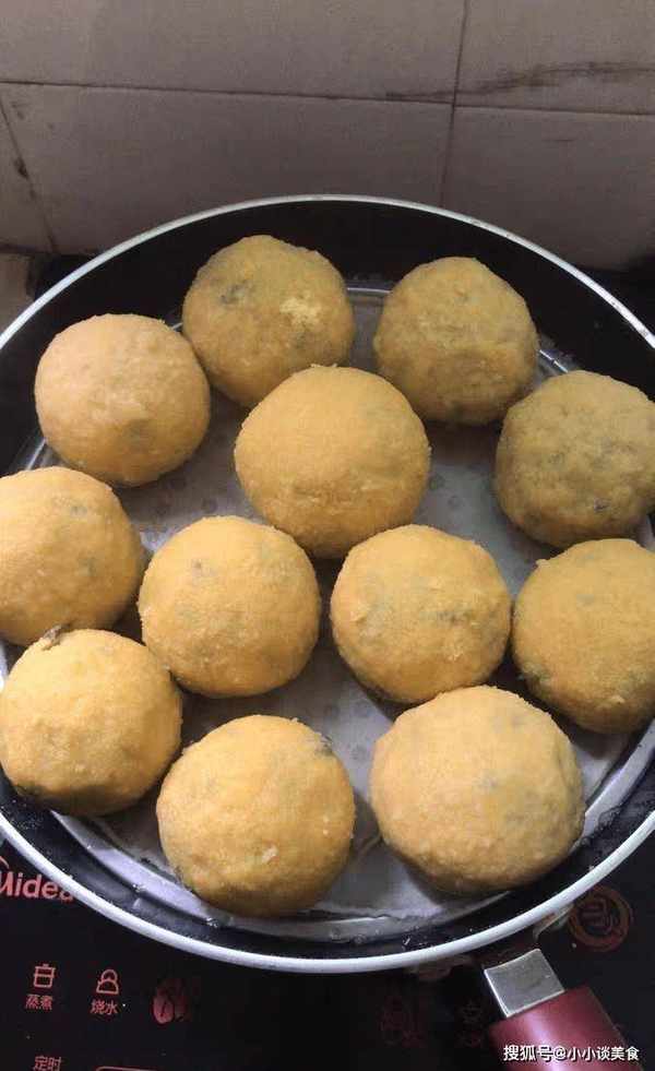 第七步,用玉米粉包菜團子,沾點水,繼續包玉米粉,做三遍。