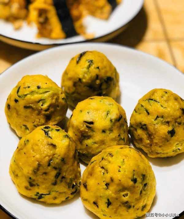 第四步,此時準備一個小碗,將雞蛋打入碗中,用熱油將其炸至金黃色,待涼後搗碎,與青菜、胡蘿卜一起放入。