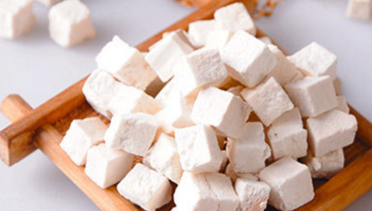 茯苓:味甘、淡、性平,入藥具有利水滲濕、益脾和胃、寧心安神之功用。俗稱雲苓、松苓、茯靈,為寄生在松樹根上的菌類植物,形狀像甘薯,外皮黑褐色,裡面白色或粉紅色。它能祛濕利水,健脾安神,不分四季,無論寒、溫、風、濕諸疾,都能發揮其獨特功效。