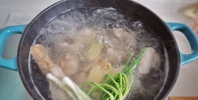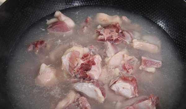 2.焯水,焯水的時候要小心,放入冷水中。將鴨肉和薑片放入鍋中,加足量水,加少許料酒,大火燒開,煮2分鐘後撈出,這樣處理可以去除鴨肉的土腥味。