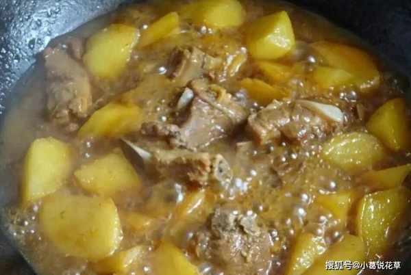 第七步:然後加入土豆,繼續燉30分鐘,撒入適量的鹽,小火燉10分鐘,最後大火收汁,即可食用。