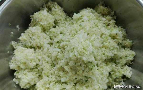 第四步:將白菜瀝幹水分,然後將醃制好的肉餡倒入白菜中,撒上適量的鹽、食用油、香油拌勻成餃子餡。