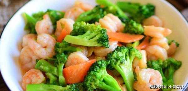 第四步,西蘭花爆炒,然後胡蘿卜和蝦仁爆炒,加醬油和鹽調味,翻炒,就可以出鍋瞭。