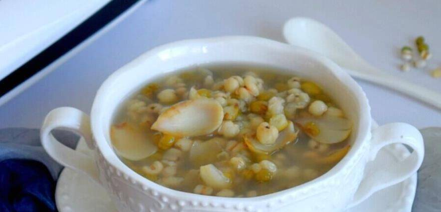 原料:綠豆100克,薏米50克,百合20克,白糖適量。