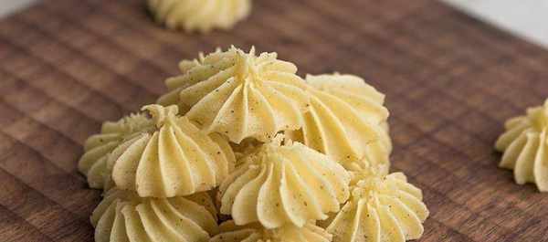 第二步趁熱加入黃油、鹽和胡椒粉,攪拌均勻,過濾使其更細膩,然後裝入裱花袋中。