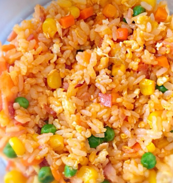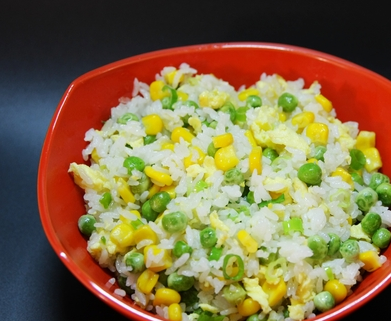 米飯最好用前一天的剩飯,容易分粒,配料食材可根據個人喜好更換。準備好所有食材配料.鍋中倒適量油燒至五層熱,胡蘿卜下鍋翻炒一下.依次放入玉米、豌豆、火腿腸翻炒.加入白米飯.將米飯和菜類翻炒均勻.用小碗裝適量清水加入鹽和雞精融化倒入鍋中調味.很青翠的顏色.開吃啦。豌豆中富含人體所需的各種營養物質,尤其是含有優質蛋白質,可以提高機體的抗病能力和康復能力。防癌治癌豌豆中富含胡蘿卜素,食用後可防止人體致癌物質的合成,從而減少癌細胞的形成,降低人體癌癥的發病率。豌豆莢中富含維生素C和能分解體內亞硝胺的酶,可以分解亞硝胺,具有抗癌防癌的作用。豌豆與一般蔬菜有所不同,所含的止杈酸、赤黴素和植物凝素等物質,具有抗菌消炎,增強新陳代謝的功能。豐富的鈣可起到降血壓的功效,有促進細胞分裂、降低血清膽固醇、並防止其沉積於血管壁,因此,玉米對冠心病、動脈粥樣硬化、高脂血癥及高血壓等都有一定的預防和治療作用。中美洲印第安人不易患高血壓與他們主要食用玉米有關。刺激大腦細胞,增強人的腦力、記憶力和人體新陳代謝力、調整神經系統功能。能起到使皮膚細嫩光滑,抑制、延緩皺紋產生作用,可以對抗眼睛老化。