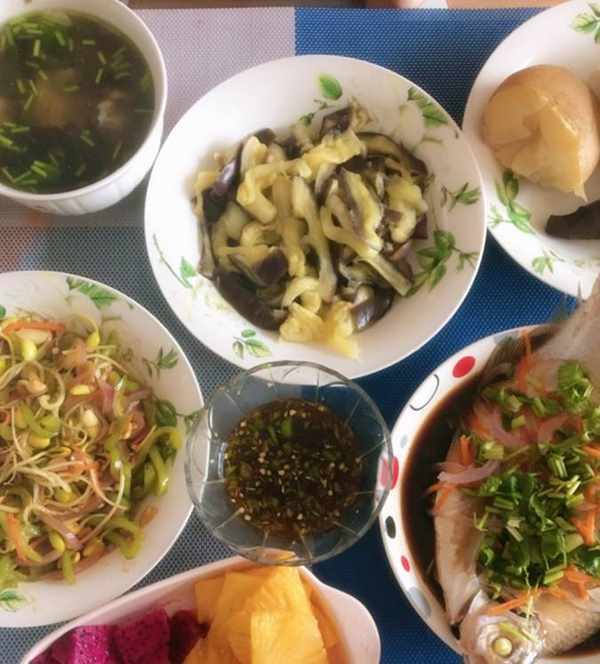 第九款:炒茄子+餛飩+煮土豆+清蒸魚+豆芽炒青菜