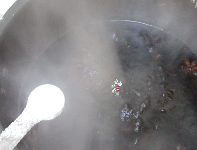 5、燒開後我們可以嘗試一下味道,再加入鹽和糖提味,用小火煮15分鐘。