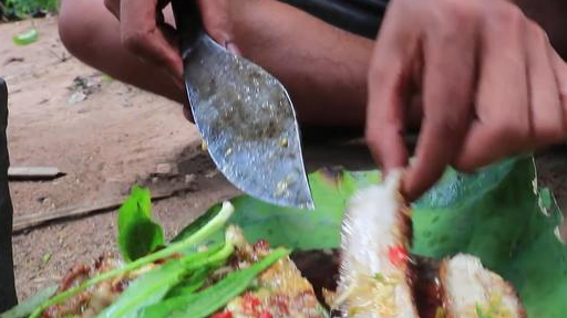 平時挺喜歡看他們在野外做美食的,尤其是這個男人做的野外美食,做出來之後看起來特別的高大上!但是他用來做美食的東西如果讓你看到瞭,會更加佩服他,他是用石頭當鍋來做菜的!來看一下他是怎麼用石頭做菜的吧,這次他準備的食材是10斤左右的五花肉,上面肥肉還挺多的!在用石頭猛敲瞭一陣肥肉,把它打松之後,就放在火上燒瞭。