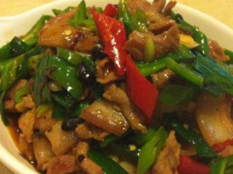 爆香後加入肉片,炒至變色後加入適量柱侯醬和醬油,加入一點上湯或水,倒入剩下的青蒜苗,8成熟放入青椒,加鹽稍稍翻炒即可出鍋。辣椒炒肉吃完之後,用饅頭沾醬油湯,我小時候就是這麼吃胖的啊。