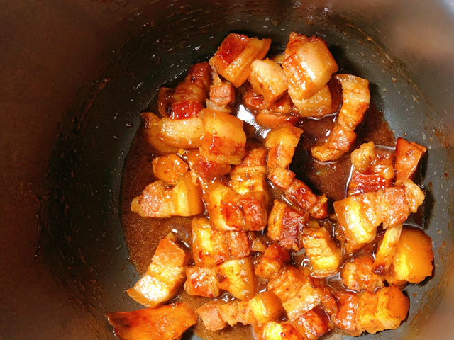 1、五花肉在電飯鍋中煸炒的時候會滲出很多油,裝盤的時候這些油可以不要,這樣吃起來才會肥而不膩。