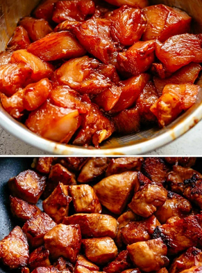 這道菜全程要大火,煸炒雞丁不能久,久瞭就會老。