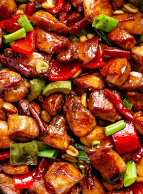 宮保雞丁的特色是辣中有甜,甜中有辣,雞肉的鮮嫩配合花生的香脆,入口鮮辣酥香,紅而不辣,辣而不猛,肉質滑脆