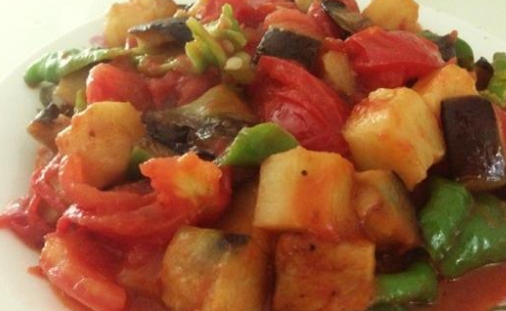 番茄炒茄子:不僅色香味俱全,更主要的是好吃,不油膩,西紅柿屬茄科,為一年生蔬菜。原產南美洲,我國各地均普遍栽培,夏秋季出產較多。相傳西紅柿最早生長在南美洲,因色彩嬌艷,人們對它十分警惕,視為“狐貍的果實”,又稱狼桃,隻供觀賞,不敢品嘗。西紅柿的食用部位為多汁的漿果。它的品種極多,按果的形狀可分為圓形的、扁圓形的、長圓形的、尖圓形的;按果皮的顏色分,有大紅的、粉紅的、橙紅的和黃色的。西紅柿的品質要求:一般以果形周正,無裂口、蟲咬,成熟適度,酸甜適口,肉肥厚,心室小者。宜選擇成熟適度的番茄,不僅口味好,而且營養價值高。