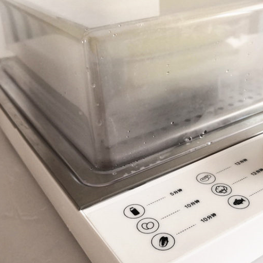 第3步、上鍋將其蒸熟,這裡用的是用電的蒸氣料理機,所以要先將水箱註入一定量的純凈水。