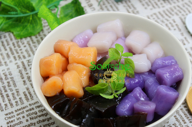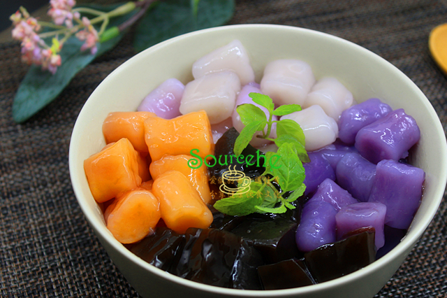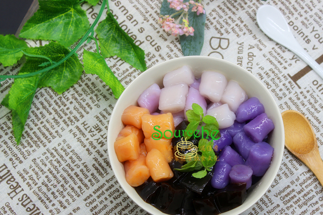 【sourcehe溫馨小貼士】1.仙草是廣東的一種草熬煮冷卻之後會凝固,現在有仙草粉,煮沸之後冷卻就會凝固,夏天吃冰,口感絕佳。2.芋圓一般有芋頭、紅薯、紫薯、南瓜等多種食材做成五顏六色,晶瑩剔透,香濃順滑。3.芋圓和仙草是經典的招牌搭配,還可以搭配紅豆沙、綠豆沙,或牛奶、椰漿等。