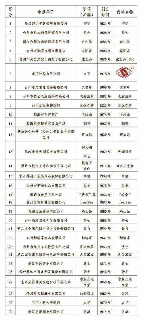 一個“老字號”就是一塊“金字招牌”。為加快推動我市“老字號”創新發展,培育壯大“老字號”隊伍,提升“老字號”商業、文化價值,臺州市商務局啟動瞭首批“臺州老字號”認定工作,並於近日選出30傢企業(詳見上圖)。