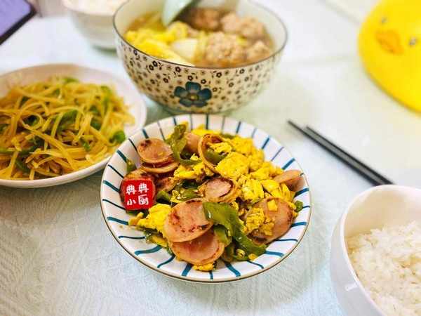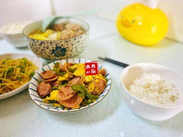 媽媽說帶過來的雞蛋要快點吃掉,呃。不僅爸媽給瞭,舅舅也給瞭不少雞蛋,所以最近也是瘋逛炫雞蛋中。這不,青椒炒雞蛋怕孩子不愛吃瞭,加瞭兩根烤腸,這樣一搭配不就完美瞭嘛。