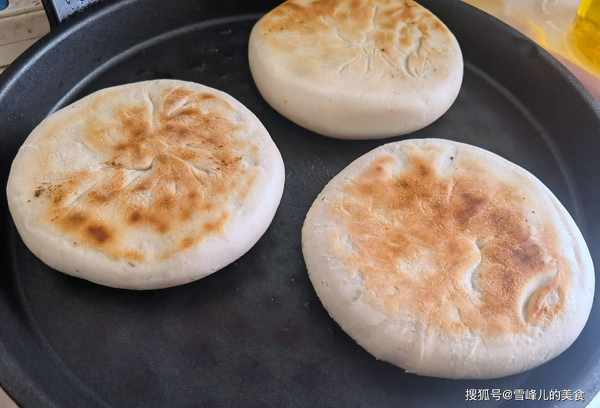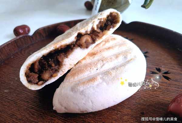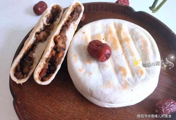 第七步:出鍋的豆餡兒餅,外面有些脆,裡面暄軟,餡料香甜,非常好吃,這款餡料是沒有放白糖的,它的甜味來自於大棗的甜味,微微甜很好吃。