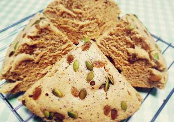 紅棗發糕,傳統特色糕點,將玉米面用八成開的水邊攪邊燙,晾涼後與面粉摻到一起,加入鮮酵母,用溫水和成稀面團發酵,然後再摻入黃豆面揉勻。把金絲小棗洗凈煮熟去湯,與青梅同洗凈去核,雪成小條,拌入揉勻的面團。待蒸鍋內水開,在篦子上鋪好白佈,將面團倒入,用手蘸水拍勻,再用小刀割成方塊,用旺火蒸熟即可食用。食之松軟、香甜,味美可口,營養價值高。做棗糕別再用泡打粉瞭,多加這1步,不塌餡不回縮,補血又益氣,喜歡的朋友快來試試吧!
