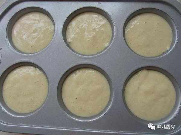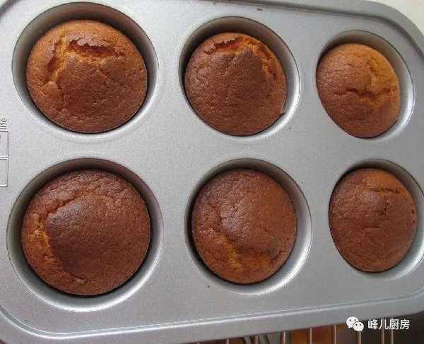 10、將蛋糕模具放入預熱好的170度烤箱,烤焙15分鐘,表面金黃色即可出爐。