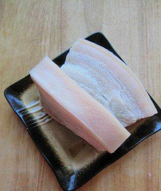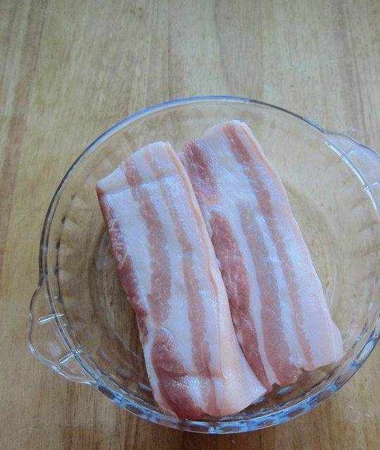 10.準備肥瘦相間的五花腩肉,洗凈,瀝幹水分