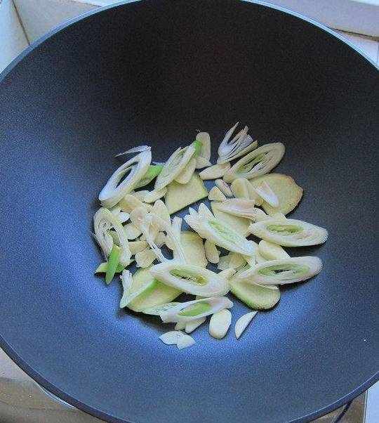 15.鍋底鋪上薑片、蒜片、大蔥片