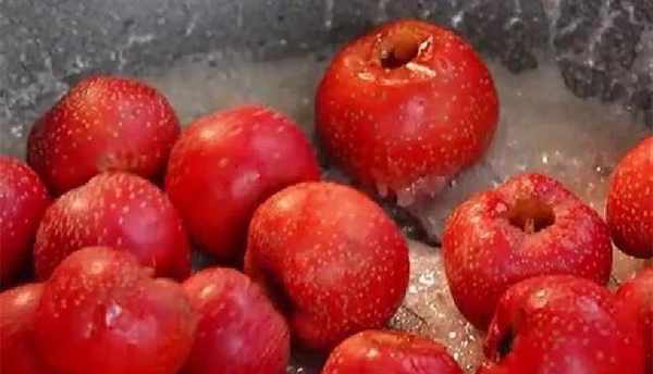 1.將準備好的山楂球放在清水中,加入適量的水,食鹽,搓洗一下表面。山楂上面有一個蒂,最好我們在清洗的時候給扯掉,山楂蒂的周圍用搓洗一下,因為它會留有一些臟東西。處理幹凈之後的山楂,我們可以準備一個吸管,然後從山楂的兩端往裡面一戳,很快就可以將裡面的山楂籽給它處理掉,處理好後的山楂再放在盆中備用;