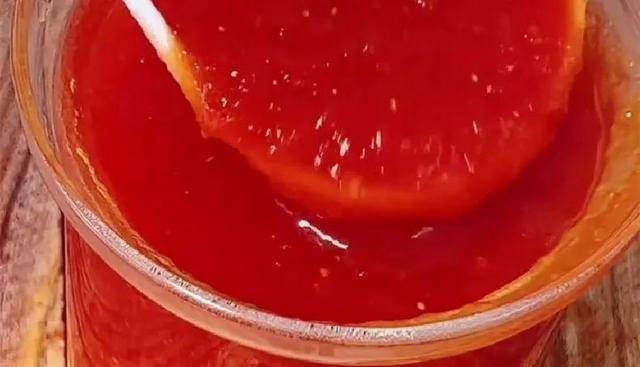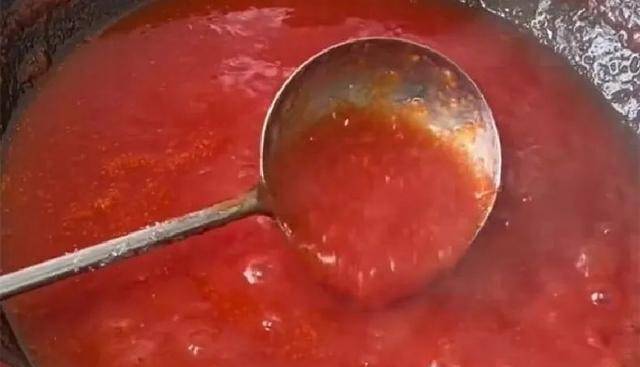 5.將鍋裡面的西紅柿煮至濃稠,而且會冒泡的狀態,我們就放上一勺白醋,一勺食鹽。放入後攪拌均勻,再煮個一分鐘。煮好後的西紅柿醬盛出在盆裡面放涼,放涼後放在冰箱中保存半個月都不會壞。