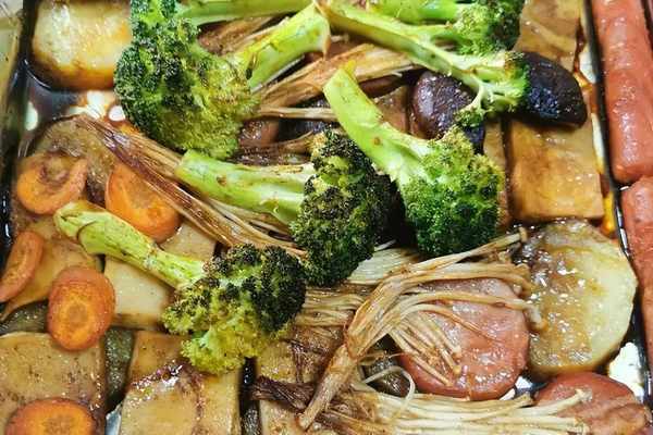 這是一個非常簡單而健康的烤蔬菜食譜,你需要蔬菜、橄欖油、鹽和黑胡椒。將蔬菜切成小塊,然後在烤盤上塗上橄欖油。將蔬菜放在烤盤上,撒上鹽和黑胡椒,用烤箱烤10-15分鐘,直到蔬菜熟透為止。