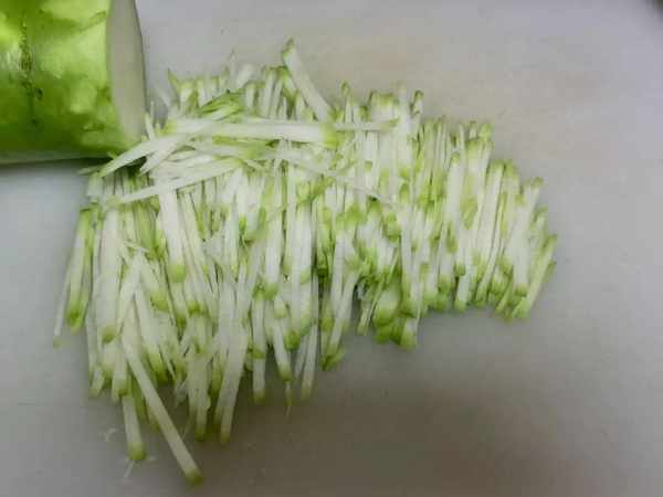 1、蘿卜洗凈切絲放2勺鹽醃20分鐘擠出水。