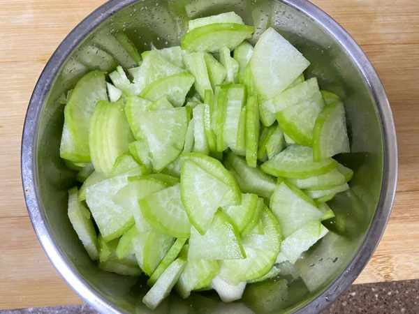 2、醃出水份後倒掉並用水沖洗蘿卜2遍,擠幹水份。