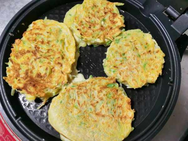 3、最後加入適量面粉,少許水,攪拌成糊糊狀,即可分成小團放入電餅鐺啦,烤制兩面金黃即可。
