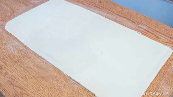 不用醒面,直接將面團搟開成長方形的薄片,不整齊的邊緣用刮板修一下;