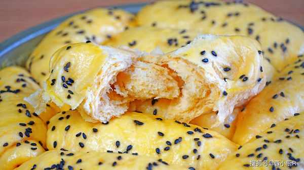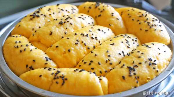 食材:紅薯、20克白糖、300克普通面粉、3克酵母、牛奶適量、食用油、蛋黃液、少許黑芝麻