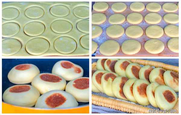 3、找一個圓形的模具,蓋子 杯子 小碗都可以,模具越小,做出來的餅會越好看哦。壓出小餅,多餘的邊角繼續揉光滑後搟開搟薄,繼續壓出小餅,直到所有的面皮全部用完,山藥餅的生胚就完成瞭。