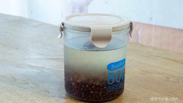 1、150克赤小豆先清洗幹凈,倒入一個可以密封的容器中,加120克白糖、300克清水,蓋起來後放冷藏浸泡12個小時;