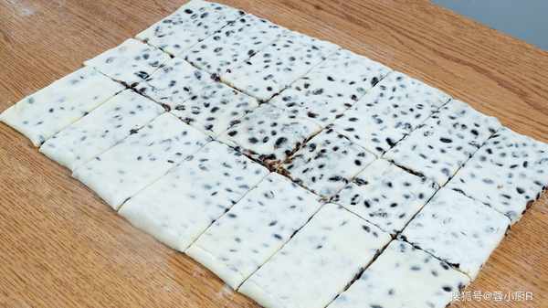 9、先從中間向外輕輕搟薄,然後再調整形狀慢慢搟開,盡量搟到薄厚一致,整理下後先從中間橫著切開,再改刀成小塊兒;