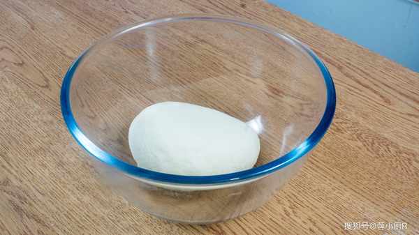 4、面團揉好後蓋上保鮮膜,這裡的碗比較大,保鮮膜比較小,我們給它多繞幾遍就好瞭,然後放一旁醒發至2倍大;
