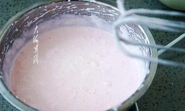 220毫升牛奶倒入盆中,加入1包冰淇淋粉,攪拌均勻,靜置15分鐘,讓二者充分融合。
