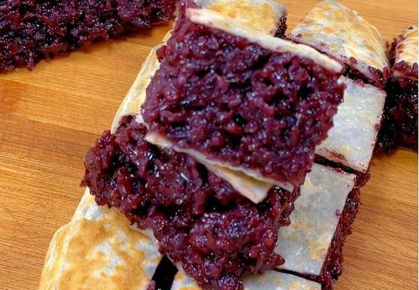 比如有我們童年時候最愛吃的老式奶油小蛋糕、超大版的紫米餅、還有量大又便宜的1塊錢1袋的豆漿,有口感香軟的牛奶棒,有11塊錢自選的麻辣拌,還有豬肉餡的博山火燒,老大爺賣的綠豆糕,還有炒鍋餅等等。
